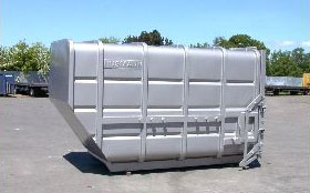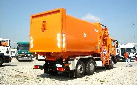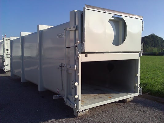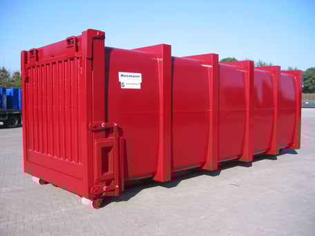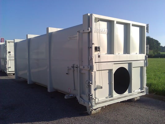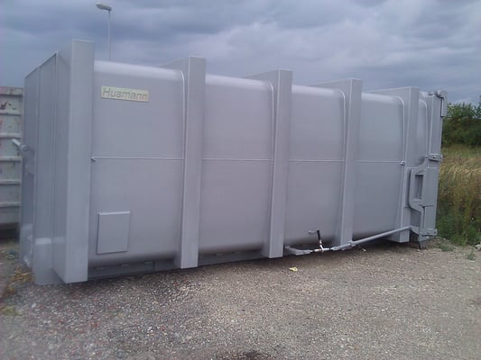 Husmann Pressbehälter der E - Baureihe zeichnen sich aus durch ihre innovative Seitenwand- und Dachkonstruktion aus rundgewalzten Stahlblechen. In Verbindung mit zusätzlichen Verstärkungsprofilen an den Behälterenden, seitlich und im Boden, durchgehend verschweißt, wird ein Höchstmaß an Stabilität erreicht. Das Aufnahmesystem kann auf alle gängigen Abroll- und Absetzfahrzeuge abgestimmt werden. Sonderabmessungen und ein umfangreiches Zubehörprogramm komplettieren das Angebot.