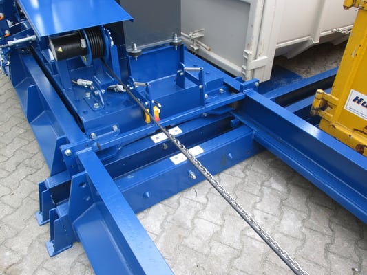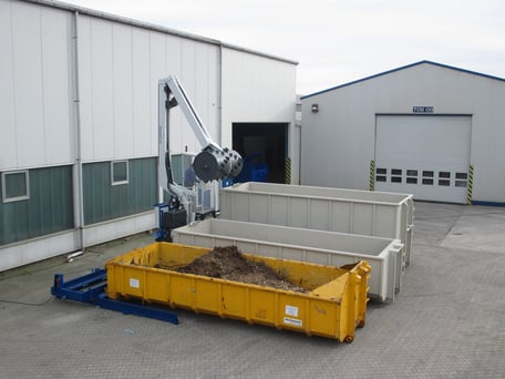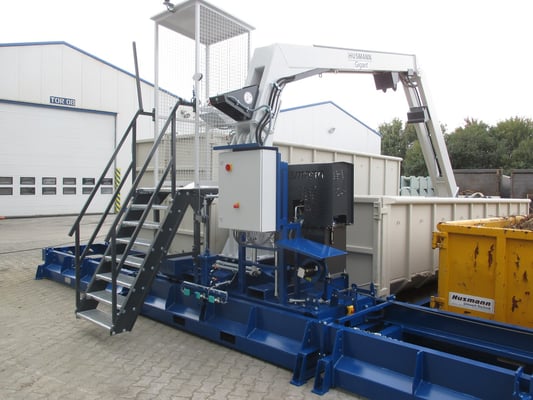 Die Verschiebeanlage mit Walzenverdichter dient zur Verdichtung von Abfällen oder Wertstoffen in mehreren, parallel zueinander angeordneten, offenen Containern.